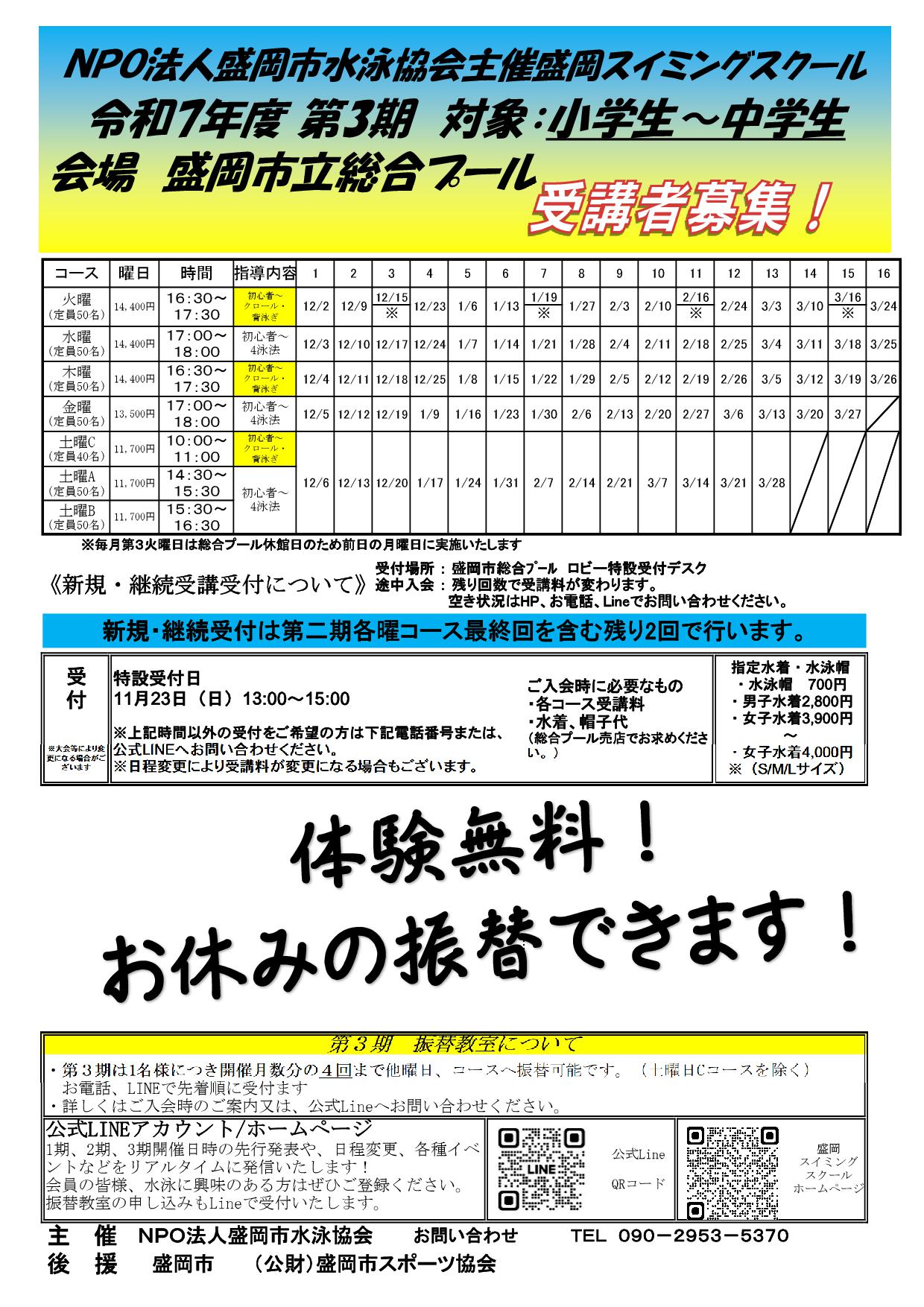 | NPO法人盛岡市水泳協会 盛岡スイミングスクール 更新情報 |